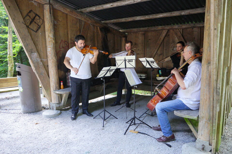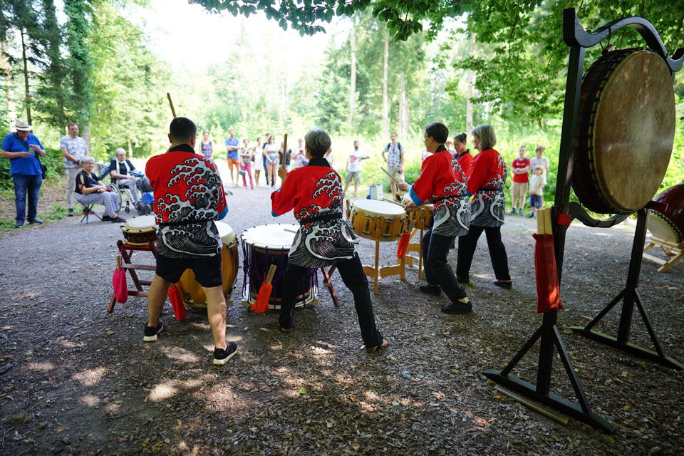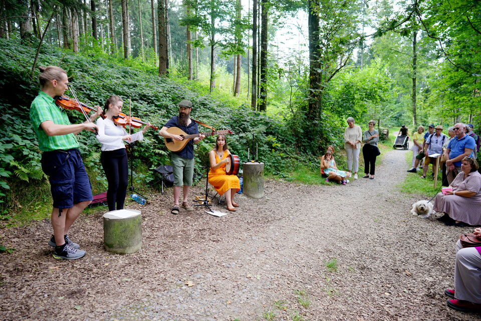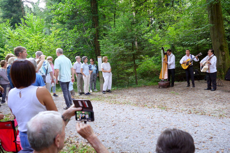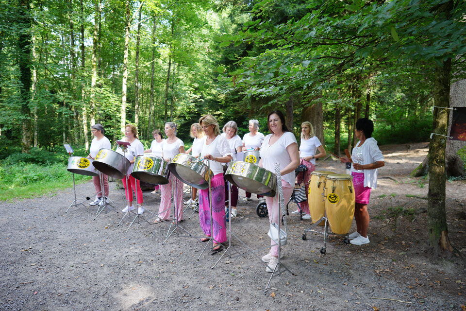 In diesem Jahr erfreuten wir uns an wunderbar angenehmem und regenfreiem Wetter, sodass die Musikalische Weltreise im Sijentalwald stattfinden konnte. Um 14 Uhr ging es los mit dem Einzug der Tambourengruppe. Sehr viele Besucherinnen und Besucher waren zur Eröffnung bereits da. Die Musikrichtungen und Darbietungen waren zum Zuhören, wie auch zum Zuschauen sehr schön – einmal mehr ein vielfältiger Einblick in verschiedene Musikkulturen. Es war ein Nachmittag zum Musik geniessen, zum Mitwippen und Tanzen, gemütlichem Spazieren, im Bächlein spielen und Steine sammeln, etwas trinken zur Auffrischung und geselligem Austausch.